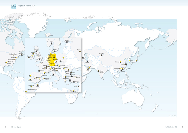 Köln Bonn Airport – Geschäftsbericht 2013: Illustration Flugziele Fracht